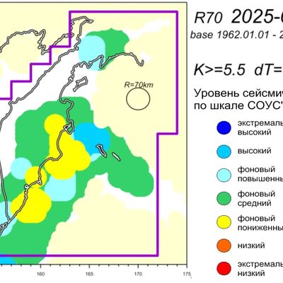 Уровень сейсмичности Камчатского участка зоны субдукции (по состоянию на 24 сентября 2025 г.) – экстремально высокий по шкале СОУС'09. (http://emsd.ru/files/ku/ViS2011-SOUS.pdf).
