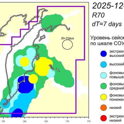 Уровень сейсмичности Камчатского участка зоны субдукции (по состоянию на 24 декабря 2025 г.) – высокий по шкале СОУС'09. (http://emsd.ru/files/ku/ViS2011-SOUS.pdf).