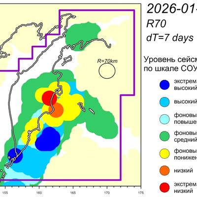 Уровень сейсмичности Камчатского участка зоны субдукции (по состоянию на 21 января 2026 г.) – фоновый повышенный по шкале СОУС'09. (http://emsd.ru/files/ku/ViS2011-SOUS.pdf).
