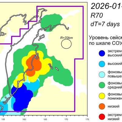 Уровень сейсмичности Камчатского участка зоны субдукции (по состоянию на 28 января 2026 г.) – высокий по шкале СОУС'09. (http://emsd.ru/files/ku/ViS2011-SOUS.pdf).